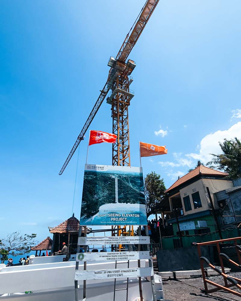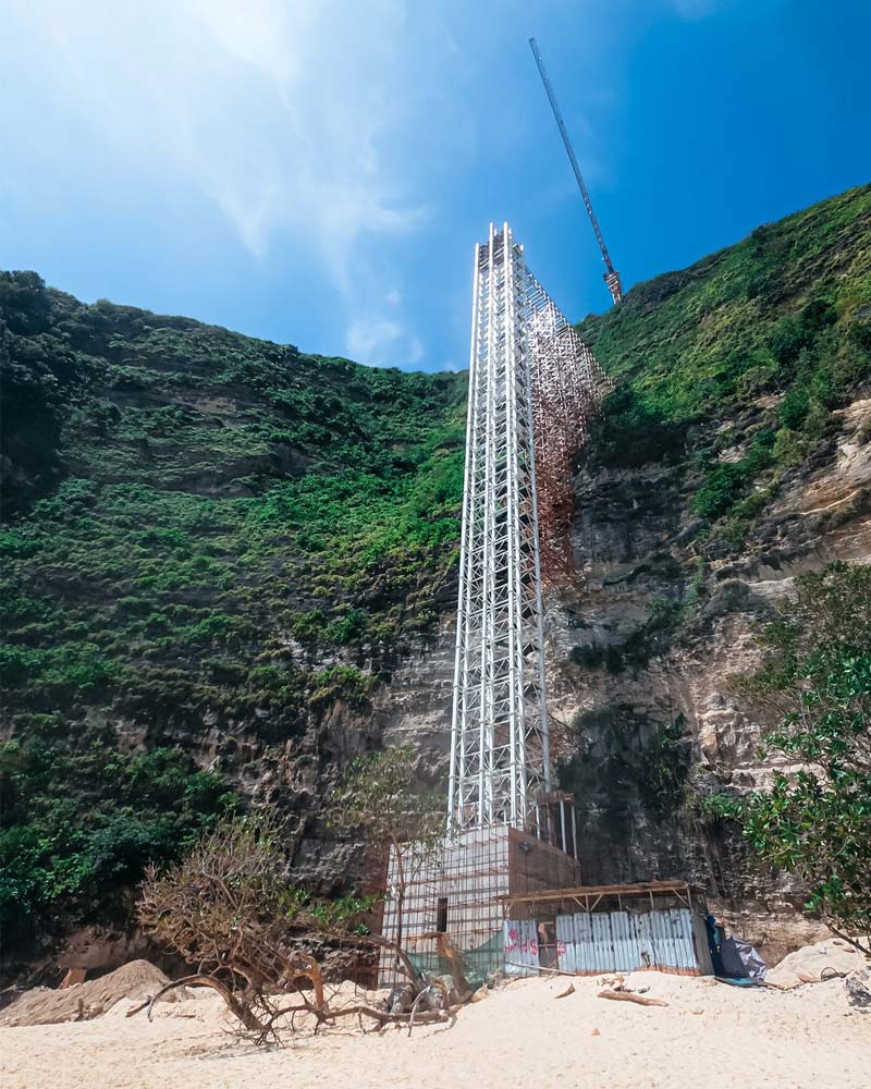 Comme je vous l’ai dit au début de cet article, la plage de Kelingking va subir un changement qui aura un impact permanent sur son merveilleux environnement naturel, car il y a quelques mois, la construction d’un ascenseur qui mènera les touristes directement du belvédère à la plage a commencé.