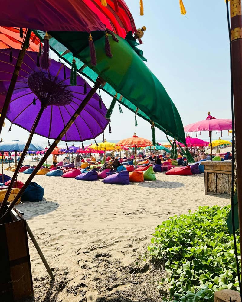 En ce qui me concerne, mon premier coup de foudre à Seminyak a été sa grande et très longue plage. À l’époque, cette vaste étendue de sable était complètement déserte, ponctuée seulement de quelques transats et parasols. Aujourd’hui, elle est très bien équipée avec des poufs colorés, des restaurants et des beach clubs !